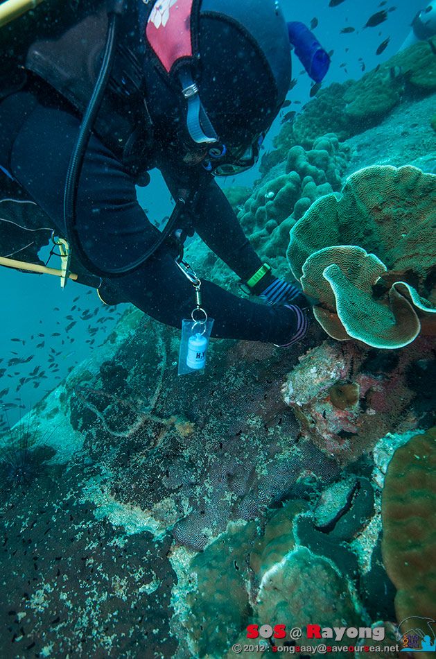 จากที่น้อง Tik ได้ชวนสองสายไปเก็บเศษอวนที่หินเพลิงเมื่อวันอาทิตย์ ที่ 21 ตุลาคม 2555 ทำให้พบว่า นอกจากเศษอวนที่ยังหลงเหลืออยู่บ้างแล้ว ยังมีเชือกปากอวนเส้นยาวที่วนรอบกองหินเพิงอยู่ ... จึงเป็นจุดที่ทำให้ SOS ต้องนัดรวมพล เพื่อไปเก็บเศษอวนและหาทางที่จะนำเชือกปากอวนขึ้นมา โดยกำหนดให้วันที่ 1-2 ธันวาคม 2555 เป็นวันดำเนินกิจกรรมนี้ พวกเราทั้งหมดเดินทางไปเข้าที่พักที่ระยองกันตั้งแต่คืนวันที่ 30 พฤศจิกายน 2555 และทะยอยไปพบกันที่ท่าเรืออ่าวมะขามป้อม แต่เช้าตรู่ของวันที่ 1 ธันวาคม 2555 ที่แสงตะวันยังเป็นแสงสีทองเรื่อๆอยู่ http://i1198.photobucket.com/albums/...s/Opening1.jpg เที่ยวนี้ สัมภาระไม่ได้มากมาย จึงอาศัยบริการของเจ้ากระต่ายขาวแทนเจ้าตู้ซิ่ง http://i1198.photobucket.com/albums/...s/Opening2.jpg |