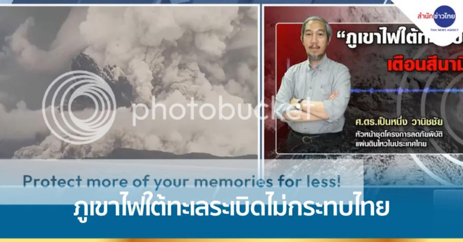 กรุงเทพฯ 16 ม.ค. ? หัวหน้าชุดโครงการลดภัยพิบัติแผ่นดินไหวในประเทศไทย เผยเหตุภูเขาไฟใต้ทะเลระเบิด ไม่ส่งผลกระทบต่อประเทศไทย เพราะจุดกำเนิดอยู่ห่างจากไทยมาก และทะเลไทยไม่ได้ต่อเชื่อมกับมหาสมุทรแปซิฟิก
