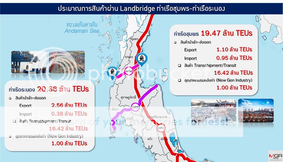 รายงานข่าวแจ้งว่า ขณะนี้ สนข.อยู่ระหว่างดำเนินการศึกษาโครงการพัฒนาโครงสร้างพื้นฐานด้านการคมนาคมขนส่ง เพื่อพัฒนาระเบียงเศรษฐกิจภาคใต้เพื่อเชื่อมโยงการขนส่งระหว่างอ่าวไทยกับอันดามัน (Landbridge) ระยะเวลาศึกษา 30 เดือน คาดว่าจะศึกษาแล้วเสร็จภายในปี 2566 ภายใต้แนวคิดการพัฒนาสร้างท่าเรือชุมพร ที่อยู่ฝั่งอ่าวไทย กำหนดให้เป็นท่าเรือน้ำลึกที่ทันสมัย โดยนำระบบออโตเมชันมาใช้เพื่อยกระดับท่าเรือสู่ Smart Port ส่วนแนวคิดการพัฒนาท่าเรือระนอง กำหนดให้เป็นท่าเรือสินค้าคอนเทนเนอร์และเป็นประตูการค้าฝั่งอันดามัน เชื่อมโยงระหว่างท่าเรือระนองกับท่าเรือกลุ่มประเทศแถบเอเชียใต้