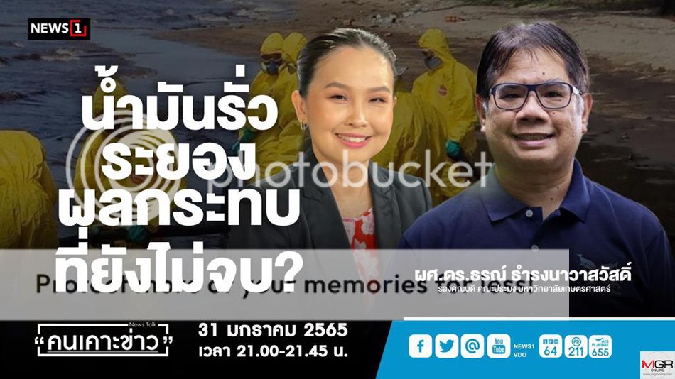 วันที่ 31 ม.ค. 2565 ผศ.ดร.ธรณ์ ธำรงนาวาสวัสดิ์ รองคณบดี คณะประมง มหาวิทยาลัยเกษตรศาสตร์ ให้สัมภาษณ์ในรายการ "คนเคาะข่าว" ออกอากาศทางสถานีโทรทัศน์ผ่านดาวเทียม ช่อง "นิวส์วัน" ในหัวข้อ "น้ำมันรั่วระยอง ผลกระทบที่ยังไม่จบ ?"
