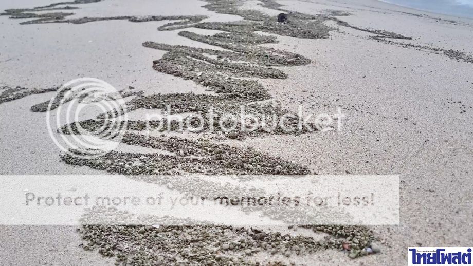 บางจุดยังเต็มไปด้วยหินภูเขาที่ถูกคลื่นซัดขึ้นมาเต็มชายหาดเนื่องจากตอนนี้สภาพคลื่นลมยังมีกำลังแรงทำให้ซัดเอาหินภูเขาไฟขึ้นมาด้วย นอกจากนี้สภาพผืนน้ำทะเลริมชายฝั่งก็ยังมีหินภูเขาไฟลอยเป็นแพสีดำอยู่บนผิวน้ำอย่างชัดเจน
