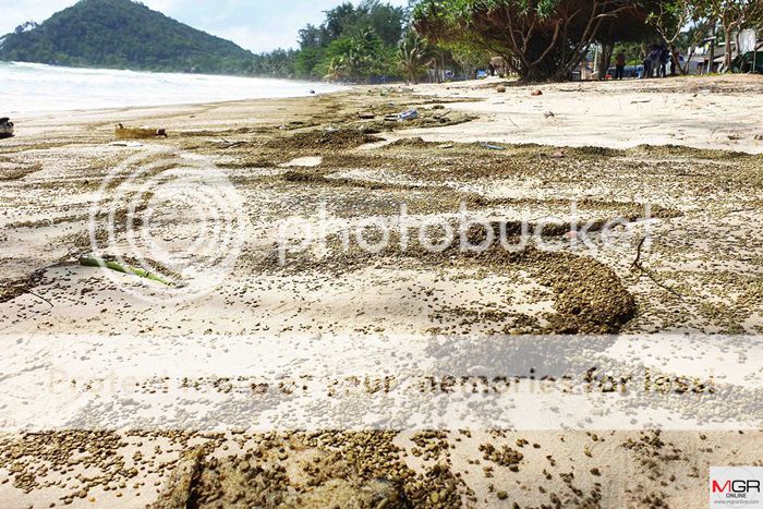 นางนิด ปานคล้าย อายุ 52 ปี เจ้าของร้านอาหารชื่อ "เจ้ติ๋มซีฟู๊ด" กล่าวว่าตนตื่นขึ้นมาตอนเช้าก็สังเกตเห็นว่า ชายหาดทุ่งวัวแล่นกลายเป็นสีดำ เหมือนคราบน้ำมันจึงเดินลงไปดูก็พบว่าเป็นก้อนหินขนาดเล็ก ๆ แต่เบามากเหมือนฟองน้ำ ถูกคลื่นซัดมากองเต็มชายหาด ต่อมาได้มีคนบอกว่าเป็นหินภูเขาไฟที่ระเบิดในประเทศอินโดนีเซีย แต่ตนก็ยังแปลกใจว่าทำไมถึงลอยมาไกลได้ขนาดนี้ และตลอดทั้งวันคลื่นยังคงซัดลอยมาเกยชายหาดอยู่อย่างต่อเนื่อง