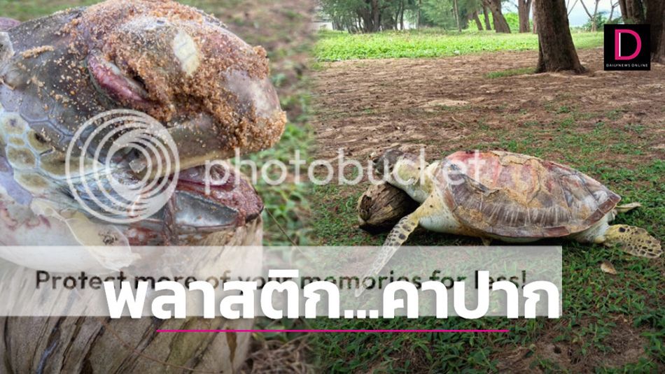 สลดซากเต่ากระลอยเกยหาดไม้ขาว พลาสติกติดคาปาก-ลำคอ