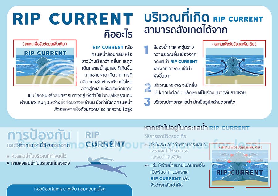 เมื่อวันที่ 20 กรกฎาคม 2565 นายแพทย์โอภาส การย์กวินพงศ์ อธิบดีกรมควบคุมโรค (ปัจจุบันดำรงตำแหน่ง ปลัด สธ.) กล่าวว่า ในช่วงเดือนมิถุนายน จนถึงเดือนตุลาคม เป็นช่วงมรสุม จึงส่งผลให้ระหว่างช่วงเดือนดังกล่าว มีฝนตกชุก ทะเลมีคลื่นลมแรง ไม่สามารถเล่นน้ำได้ ทางกรมควบคุมโรค จึงขอเตือนนักท่องเที่ยว ที่มาเล่นน้ำบริเวณชายหาด ให้ระวังคลื่นลมแรง และกระแสน้ำย้อนกลับ คลื่นทะเลดูด หรือคลื่นดอกเห็ด (Rip Current) ซึ่งมีโอกาสเกิดขึ้นได้แทบทุกหาด