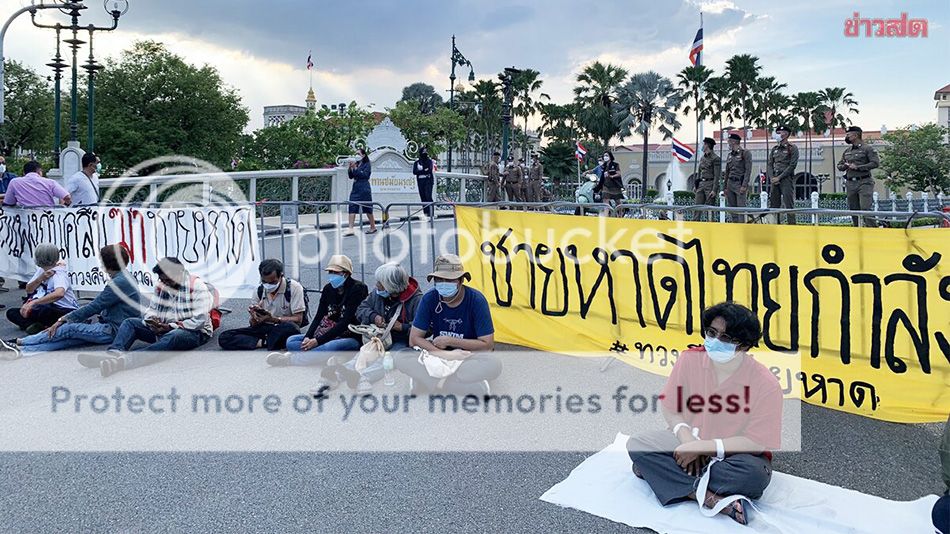 ม็อบทวงคืนชายหาด ปักหลักทำเนียบ ค้านสร้างกำแพงกันคลื่น จี้ยกเลิกมติครม.