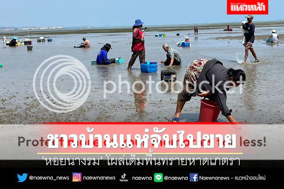 น้ำทะเลบ้านเพ จ.ระยองลดจนเห็นหอยนางรมโผล่เต็มพื้นทราย ชาวบ้านแห่เดินจับหรือเก็บไปขาย สร้างรายได้
