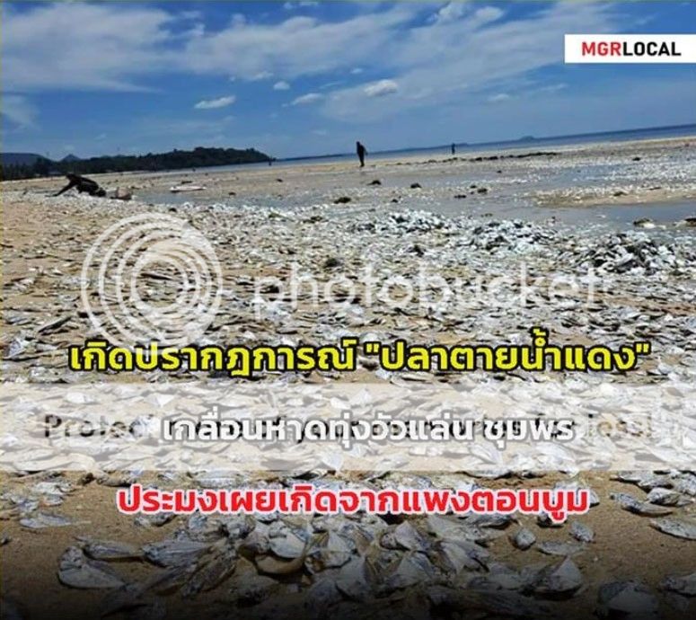 ชุมพร - เกิดปรากฏการณ์ปลาตายน้ำแดงเกลื่อนหาดทุ่งวัวแล่น จ.ชุมพร ชาวบ้านนับร้อยแห่เก็บกิน ขาย ทำปุ๋ยหมัก ใช้ในการเกษตร ประมงอำเภอเผยเกิดจากน้ำทะเลเปลี่ยน แพลงก์ตอนบลูม เตือนชาวบ้านอย่านำไปรับประทาน
