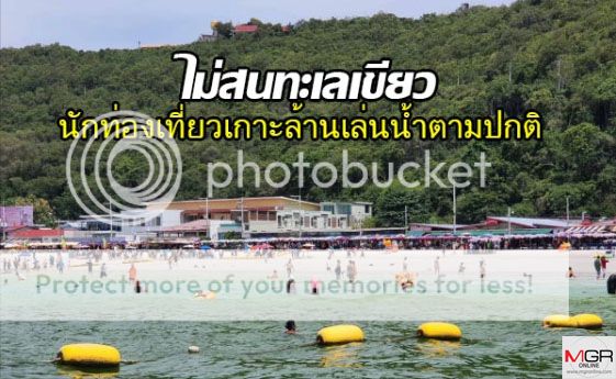 น้ำทะเลเกาะล้านเปลี่ยนเป็นสีเขียวอีกครั้ง ขณะนักท่องเที่ยวไม่หวั่นเล่นน้ำตามปกติ