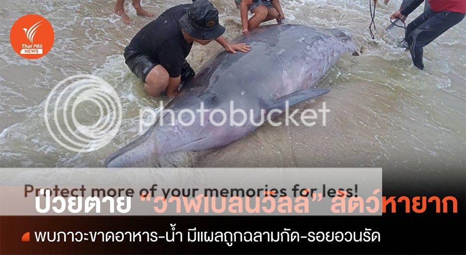 "วาฬเบลนวิลล์" สัตว์ทะเลหายาก ตายแล้ว หลังพบเกยตื้นหาดสะกอม สงขลา คาดสาเหตุเบื้องต้นเกิดจากการป่วยระยะเวลานาน ทำให้ขาดอาหาร-น้ำ จนเลือดเป็นกรดรุนแรง พบรอยจากฉลามคุกกี้คัตเตอร์ทั่วลำตัว แผลอวนรัดที่ปากล่าง ครีบหลัง