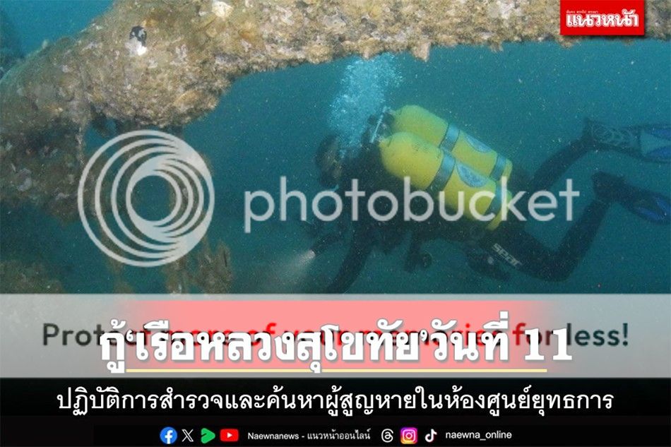 กู้ 'เรือหลวงสุโขทัย' วันที่ 11 ปฏิบัติการสำรวจและค้นหาผู้สูญหายในห้องศูนย์ยุทธการ
