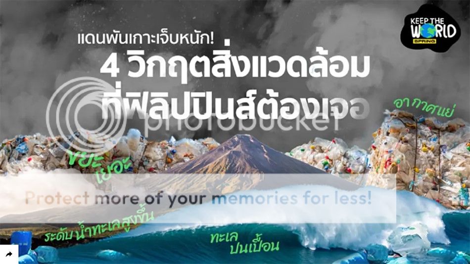 - ฟิลิปปินส์เผชิญปัญหาสิ่งแวดล้อม 4 ด้าน : อากาศย่ำแย่, ขยะพลาสติก, ทะเลปนเปื้อน, ระดับน้ำทะเลเพิ่มสูงขึ้น