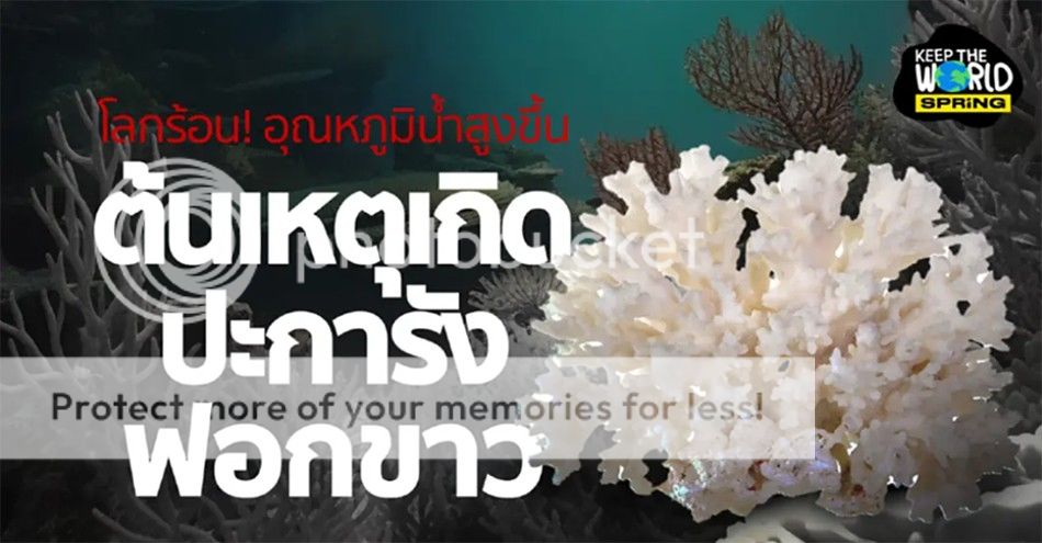 - "ปะการังฟอกขาว" เกิดจากภาวะโลกร้อน ทำให้สภาพอากาศแปรปรวนส่งผลกระทบต่อระบบนิเวศใต้ท้องทะเล