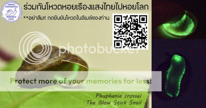 ** กดเลือกชนิด Phuphania crossei (The Glow Stick Snail) และต้องยืนยันการโหวตในอีเมล์ที่ได้รับด้วย หากไม่ยืนยันการโหวตในอีเมล์ของท่าน เสียงโหวตของท่านจะไม่ถูกนับคะแนน