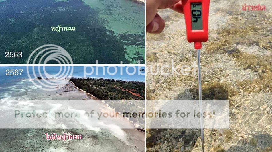 ผศ.ดร.ธรณ์ ธำรงนาวาสวัสดิ์ นักวิทยาศาสตร์ทางทะเล และอาจารย์ประจำภาควิชาวิทยาศาสตร์ทางทะเล คณะประมง มหาวิทยาลัยเกษตรศาสตร์ โพสต์ผ่านเฟซบุ๊ก Thon Thamrongnawasawat ขณะนำเครื่องวัดอุณหภูมิเพื่อวัดน้ำในแหล่งหญ้าในทะเล พบว่าอุณหภูมิ 40 องศาเซลเซียส