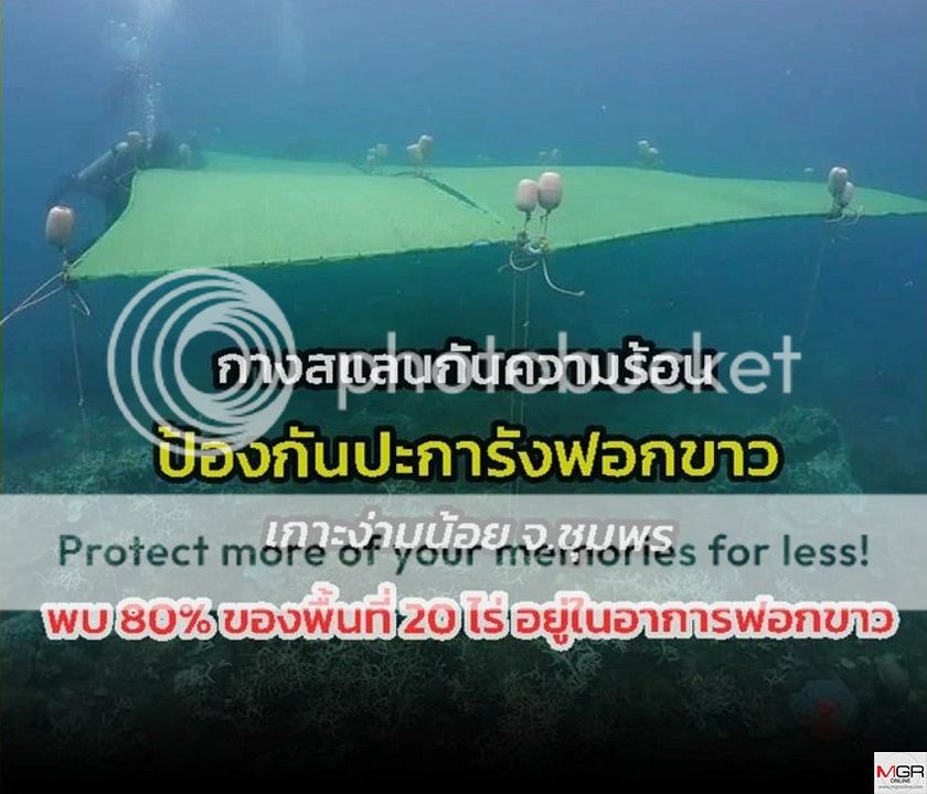 นายมรกต โจวรรณถะ หัวหน้าศูนย์ปฏิบัติการอุทยานแห่งชาติทางทะเลที่ 1 จังหวัดชุมพร เปิดเผยการสำรวจและการใช้สแลนป้องกันปะการังฟอกขาว โดยร่วมกับเจ้าหน้าที่และกลุ่มวิจัยความหลากหลายทางชีวภาพทางทะเล คณะวิทยาศาสตร์ มหาวิทยาลัยรามคำแหง