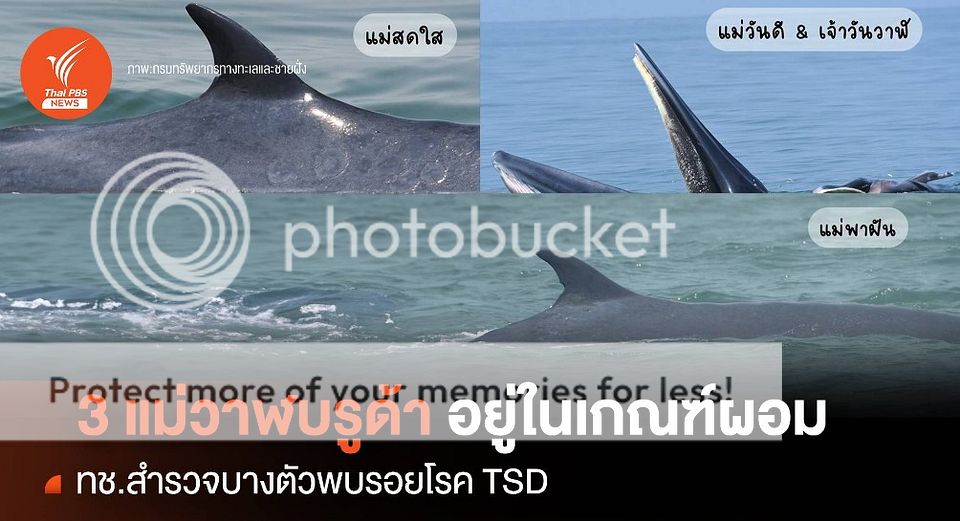 ทช.สำรวจวาฬบรูด้าอ่าวไทย ช่วง 14-16 พ.ค.นี้ พบ 13 ตัว ตั้งชื่อไว้ 9 ตัว อีก 4 ตัวไม่ทราบชื่อ ระบุแม่วันสุข แม่สดใส แม่พาฝัน ผอมอยู่ในเกณฑ์เฝ้าระวัง พบรอยโรค TSD