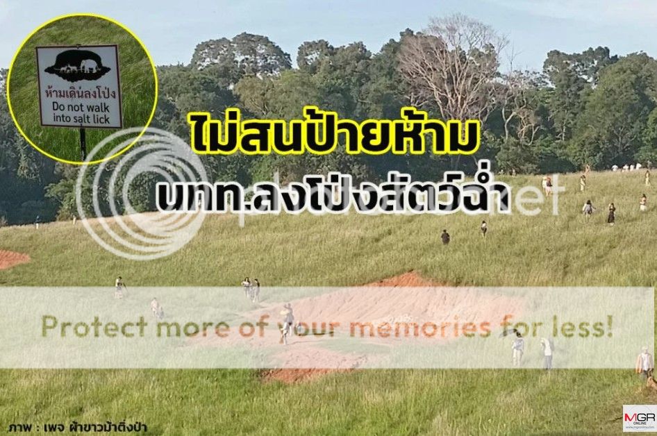 ดราม่า นักท่องเที่ยวเที่ยวทุ่งหญ้า แต่ลงไปเดินใน ?โป่งสัตว์? ทั้งที่มีป้ายห้าม (ภาพ : เพจ ผ้าขาวม้าติ่งป่า)