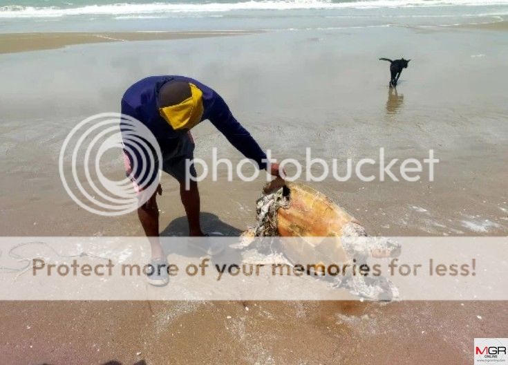 โดยพบซากเต่าหัวค้อนเพศเมีย น้ำหนักประมาณ 50 กิโลกรัม สภาพเนื้อบริเวณลำคอหลุดลุ่ย ส่งกลิ่นเหม็น คาดว่าตายมาแล้วหลายวัน