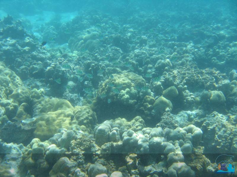 ปะการังที่ยังมีชีวิตอยู่คือปะการังโขด ปะการังอ่อน ปะการังดอกไม้ทะเลซึ่งพบเป็นแถบเลยทีเดียว และยังพบปะการังลูกโป่งเล็กอยู่อีก1กอ