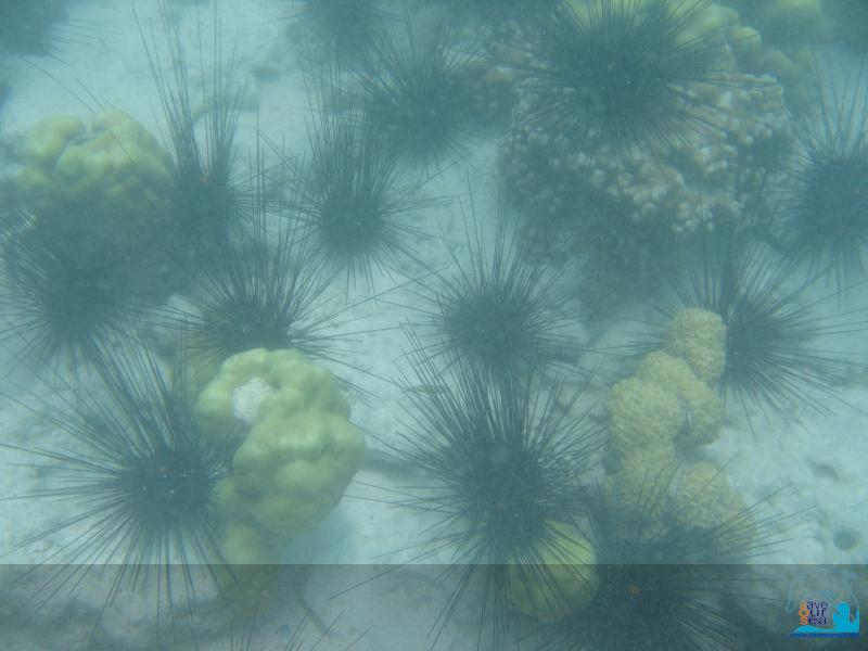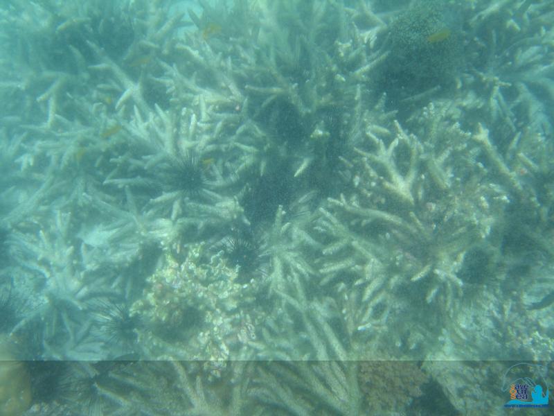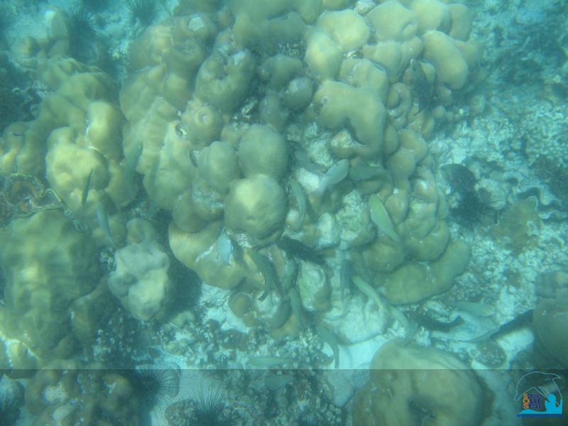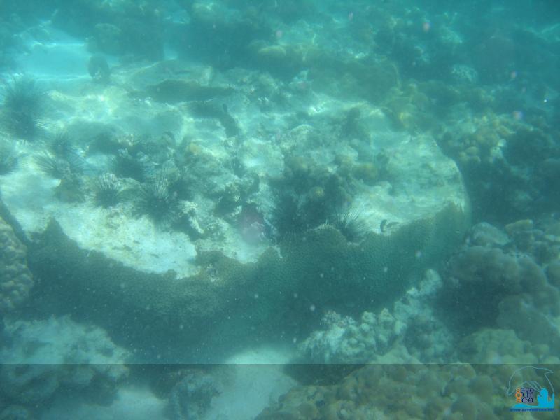 วันแรกผมไปถึงได้ไปดำที่ร่องน้ำจาบังและด้านหลังเกาะหินงามที่มีปะการังกาแล๊กซี่เยอะมากแต่....... ผมลืมหยิบกล้องไปจากที่พักครับเลยไม่มีรูปมา วันที่2เราไปตั้งต้นกันที่เกาะหินซ้อนแต่คลื่นแรงครับเลยส่งผมกับน้าดุสิตไปดูลาดเลาก่อน พอลงแล้วเลยมีข้อสรุปว่าจะให้ผมถ่ายรุปคนเดียวแล้วค่อยไปดูกัน เพราะว่าน้ำแรงและคลื่นสุงมากคนอื่นลงแล้วอาจจะมีปัญหาได้ ผมอยู่ในน้ำได้ไม่ถึง10นาทีเพราะว่าต้องรีบขึ้นไม่งั้นคนบนเรือจะเมาเอาขาขึ้นลำบากมากเพราะเรือโยกขึนโยกลง2ฟุตถ้าพล่าดทีโดนบันไดเรือฟาดเอาแน่ หลังจากเช็ครุปก็เกิดอาหารเซ็งครับมัวทุกรูปเพราะน้ำขุ่นมาก จะดำลงไปก้ไม่ได้น้ำแรงมาลงไปคงได้ปลิวกันแน่ หลังจากนั้นเลยไปที่เกาะรอกรอยที่เกาะนี้เป็นปะการังน้ำตื้นส่วนใหญ่เป็นปะการังโขดเป็นส่วนใหญ่ มีการตายของปะการังน้อยมากถือว่าอยู่ระดับสมบูรณ์มากมีการตายไม่ถึง5% และยังพบปะการังเขากวางขนาดเล็กที่ยังมีชีวิตรวมทั้งปะการังกาเล็กซี่บ้างประปราย แต่มีหอยเม่นเยอะมากซึ่งไม่ทราบว่าเกิดจากอะไร