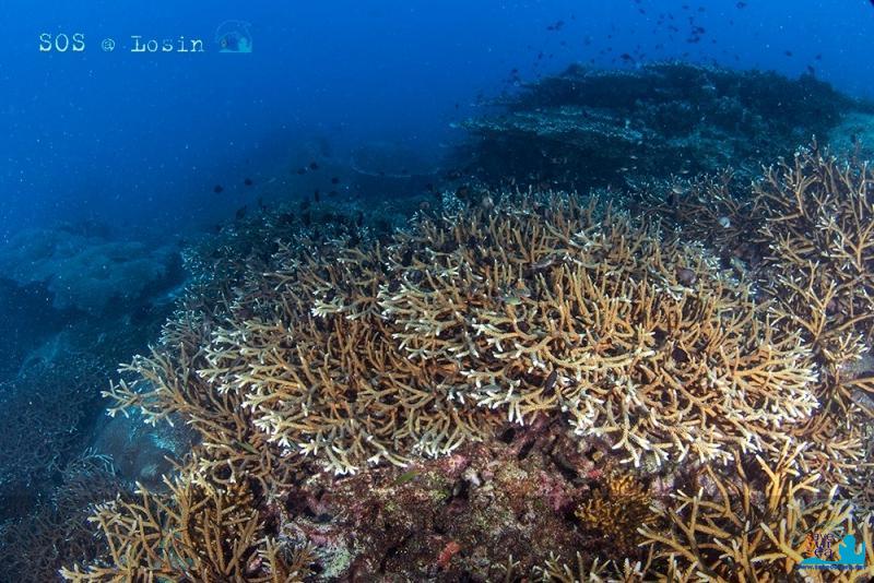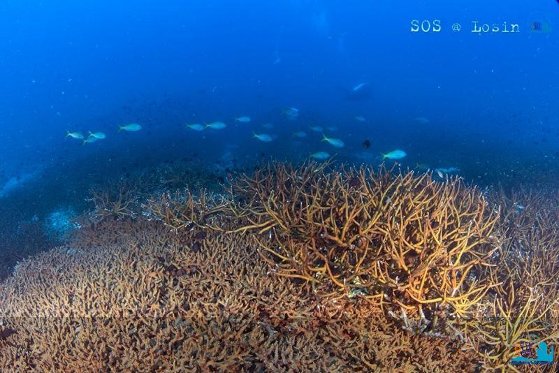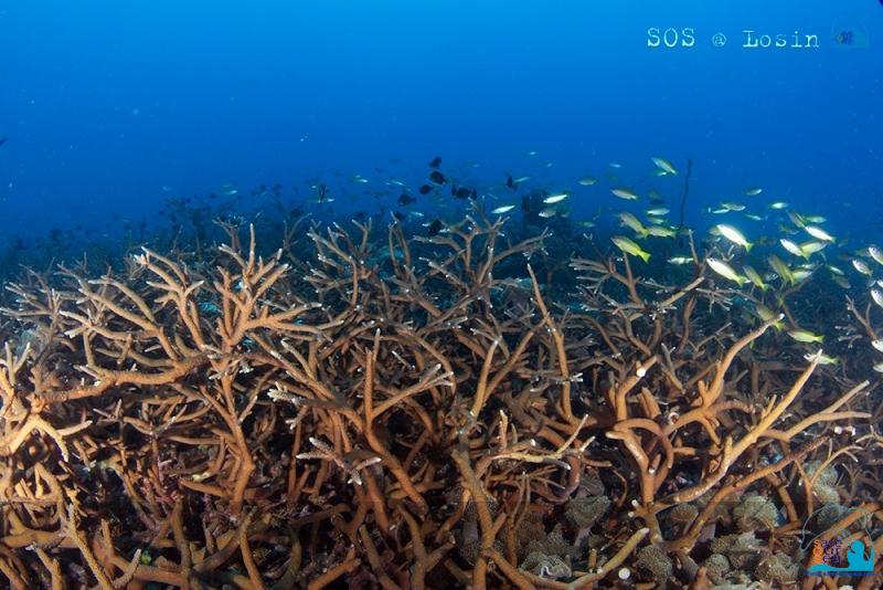 สภาพใต้น้ำที่โลซินวันนี้ ไม่เหมือนเดิม นอกจากกระแสน้ำจะแรงแล้ว น้ำยังไม่ใสแจ๋วเหมือนเคย ใกล้ผิวน้ำ ทัศนวิสัยค่อนข้างดี แต่พอลึกเกิน 10 เมตรลงไป น้ำเริ่มขุ่นเหมื่อนมีแป้งมันผสมน้ำอยู่
