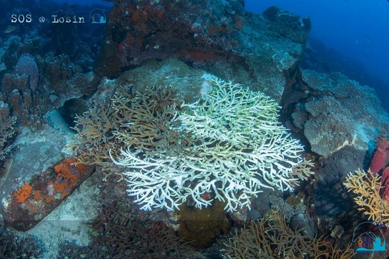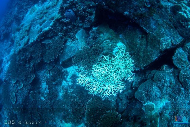 สิ่งที่น่าสังเกตคือ ที่นี่ไม่มีปะการังฟอกขาวที่เกิดจากโลกร้อน แต่มีปะการังที่ถูกดาวมงกุฏหนามเกาะกินจนซีดขาวเป็นหย่อมๆ