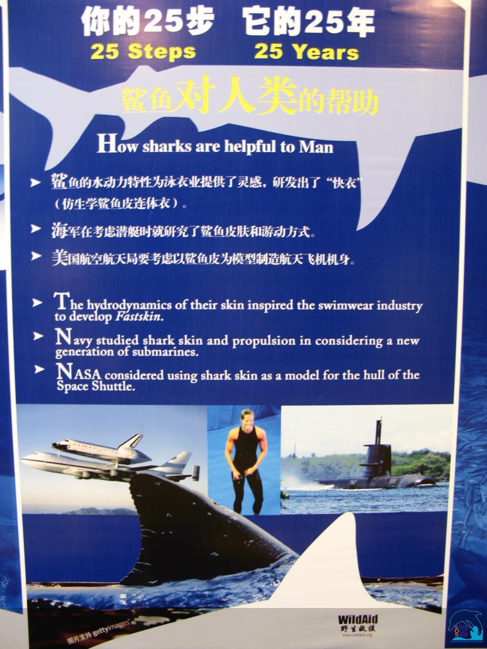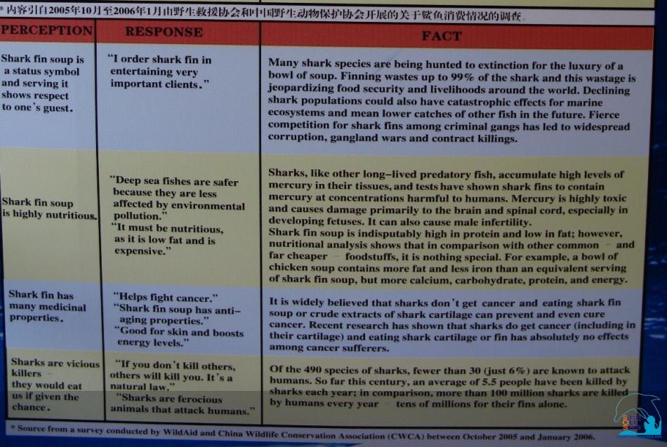 อ้อ ลืมเล่าไปนิดนึงค่ะ ว่าก่อนมาที่นี่เนี่ย พอดีได้เห็นโฆษณาเกี่ยวกับนิทรรศการนี้ในแม็กกาซีนสำหรับพวกต่างชาติที่มาอยู่ที่เซี่ยงไฮ้ค่ะ แล้วทีนี้ คนที่ออฟฟิศ Birdie ที่นี่ถามว่าเสาร์-อาทิตย์นี้จะไปไหนเหรอ Birdie ก็บอกว่าจะมาดูนิทรรศการทีว่านี่อ่ะค่ะ แล้วก็เล่าให้ฟังว่า เพราะคนจีนกินหูฉลามเยอะ เค้าก็เถียงว่า ไม่มีใครกินฉลามหรอก มีแต่ฉลามกินคน ก็เถียงกันไปเถียงกันมาอยู่พักนึง สรุปได้ว่า เค้ากินหูฉลามกันโดยที่ไม่รู้ว่าเป็นหูฉลามค่ะ Birdie งงรับประทานเลยค่ะ เค้าบอกว่าใช่ ซุปน่าเรียกว่า Sha Yu Tang (ซา หยู ถัง) แต่เค้าไม่คิดว่ามันมาจากฉลามจริง ๆ Birdie ถึงกับอึ้ง อึ้ง อึ้ง เออ เนอะ แล้วจะมีคนจีนอีกกี่ล้านคนที่ไม่รู้เนี่ย
