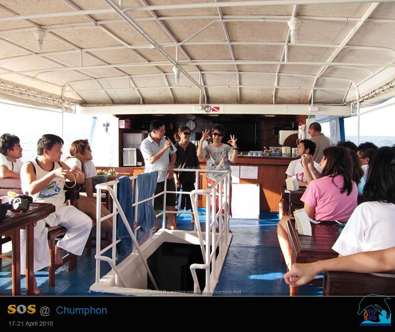 ปีนี้ก็เช่นกัน....ในระหว่างวันที่ 17 – 20 มิถุนายน 2553 เราล่องใต้ไปทำกิจกรรมเก็บขยะ ตัดอวน และเริ่มทำกิจกรรมใหม่คือ การทำ Reef Watch ที่เกาะร้านเป็ด เกาะร้านไก่ กองหินสามเหลี่ยม และจุดดำน้ำอื่นๆในเขตอุทยานแห่งชาติทางทะเล หมู่เกาะชุมพร