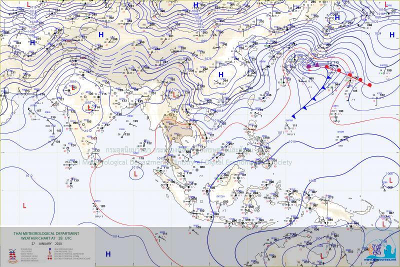 ประกาศกรมอุตุนิยมวิทยา สภาพอากาศแปรปรวนบริเวณประเทศไทยตอนบนเริ่มเข้าสู่สภาวะปกติ โดยประเทศไทยตอนบนมีอุณหภูมิลดลง ภาคเหนือและภาคตะวันออกเฉียงเหนือมีอากาศเย็นถึงหนาว อุณหภูมิลดลง 1-3 องศาเซลเซียส สำหรับยอดดอยและยอดภูมีอากาศหนาวถึงหนาวจัดและมีน้ำแข็งบางพื้นที่ อุณหภูมิต่ำสุด 1-12 องศาเซลเซียส ส่วนภาคกลางและภาคตะวันออกมีอากาศเย็น อุณหภูมิจะลดลงอีกเล็กน้อย ขอให้ประชาชนบริเวณประเทศไทยตอนบนดูแลสุขภาพเนื่องจากสภาพอากาศที่หนาวเย็นลงไว้ด้วย"อากาศแปรปรวนบริเวณประเทศไทยตอนบน(มีผลกระทบจนถึงวันที่ 27 มกราคม 2563)" ฉบับที่ 6 ลงวันที่ 27 มกราคม 2563 ทั้งนี้เนื่องจากคลื่นอากาศในกระแสลมฝ่ายตะวันตกเคลื่อนผ่านภาคเหนือเข้าปกคลุมภาคตะวันออกเฉียงเหนือ ในขณะที่บริเวณความกดอากาศสูงหรือมวลอากาศเย็นจากประเทศจีนแผ่ลงมาปกคลุมภาคตะวันออกเฉียงเหนือและทะเลจีนใต้ ลักษณะเช่นนี้ทำให้ประเทศไทยตอนบนมีอุณหภูมิลดลง ประชาชนสามารถติดตามข้อมูลที่เว็บไซต์กรมอุตุนิยมวิทยา http://www.tmd.go.th หรือสายด่วนพยากรณ์อากาศ 1182 ได้ตลอด 24 ชั่วโมง ประกาศ ณ วันที่ 27 มกราคม พ.ศ. 2563 เวลา 11.00 น. ประกาศฉบับนี้เป็นฉบับสุดท้ายของเหตุการณ์นี้ สภาวะอากาศทั่วไป พยากรณ์อากาศ 24 ชั่วโมงข้างหน้า บริเวณภาคเหนือและภาคตะวันออกเฉียงเหนือ มีอากาศเย็นถึงหนาว สำหรับยอดดอยและยอดภูมีอากาศหนาว ถึงหนาวจัดกับมีน้ำค้างแข็งบางแห่ง อุณหภูมิต่ำสุด 1-12 องศาเซลเซียส ส่วนภาคกลางมีอากาศเย็นในตอนเช้า อุณหภูมิจะลดลงเล็กน้อย ขอให้ประชาชนบริเวณประเทศไทยตอนบนดูแลสุขภาพเนื่องจากสภาพอากาศที่หนาวเย็นไว้ด้วย ฝุ่นละออง ในระยะนี้ บริเวณภาคเหนือ ภาคกลาง รวมทั้งกรุงเทพมหานครและปริมณฑล ลมที่พัดปกคลุมบริเวณดังกล่าวมีกำลังแรง ทำให้ฝุ่นละออง/ หมอกควันลดลง กรุงเทพมหานครและปริมณฑล เมฆบางส่วน กับมีฝนเล็กน้อยบางแห่ง อุณหภูมิต่ำสุด 23-24 องศาเซลเซียส อุณหภูมิสูงสุด 32-35 องศาเซลเซียส ลมตะวันออกเฉียงใต้ ความเร็ว 10-20 กม./ชม. คาดหมาย ในช่วงวันที่ 27 - 30 ม.ค. 63 บริเวณภาคตะวันออกเฉียงเหนือมีอากาศเย็นถึงหนาว อุณหภูมิจะลดลง 2-4 องศาเซลเซียส ส่วนภาคเหนือ ในช่วงวันที่ 27 - 28 ม.ค. 63 ยังคงอากาศเย็นถึงหนาว อุณหภูมิจะลดลงอีก 1-2 องศาเซลเซียส สำหรับบริเวณยอดดอยและยอดภูมีอากาศหนาวถึงหนาวจัด อุณหภูมิต่ำสุด 1-13 องศาเซลเซียส และมีน้ำค้างแข็งเกิดขึ้นบริเวณยอดดอยในภาคเหนือ ส่วนบริเวณภาคกลาง ภาคตะวันออก อุณหภูมิจะลดลง 1-3 องศาเซลเซียส สำหรับภาคใต้มีฝนฟ้าคะนองได้บางพื้นที่ หลังจากนั้น ภาคเหนือ อุณหภูมิจะสูงขึ้น 1-3 องศาเซลเซียส แต่ยังคง