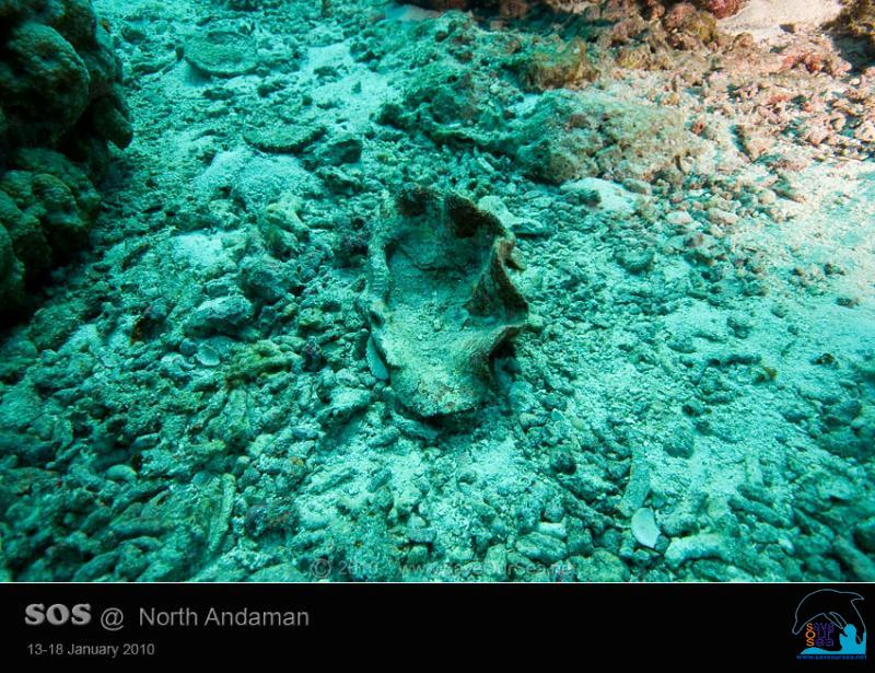 เมื่อเริ่มเข้าไปในบริเวณที่เราเคยปล่อยหอยมือเสือไว้ .... ช็อคซีเนม่าก็เริ่มขึ้น เท่าที่สายตามองเห็น .... เปลือกเปล่าๆของหอยมือเสือกระจัดกระจายไปทั่ว เรี่ยวแรงของพวกเราเริ่มน้อยลงจนแทบไม่อยากเคลื่อนที่ อะไรกัน หอยตั้ง 400 ตัว ทำไมเหลือแต่เปลือกแค่ไม่กี่สิบชิ้นเอง ....