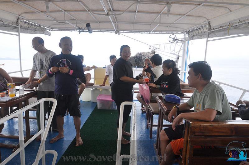 ดูภาพจากในเครื่องมันชัดแจ๋ว แต่ทำไมพอโพสต์ลงเว็บบอร์ดแล้ว มันเยินๆชอบกล ลองโพสต์ต่อไปก่อน ผมจะไม่เรียงลำดับตามวันและเวลานะครับ จะสรุปเป็นที่ๆไป..... เริ่มสรุปจากกิจกรรมที่มีบนเรือกันก่อน .... เรื่องบรี๊ฟเป็นเรื่องสำคัญที่สุดก่อนลงดำน้ำ เริ่มด้วยการบรี๊ฟเรื่องเรือ แล้วตามด้วย ความปลอดภัยในการดำน้ำและปฏิบัติงานใต้น้ำ สัญญาณมือ ไดฟ์ไซท์ ฯลฯ ครั้งนี้ มีครูพล ซึ่งสมัครมาแทบจะนาทีสุดท้ายเมื่อน้อง Denn ขอลาป่วยไป ครูพลรู้จักทุกจุดดำน้ำแถวนี้ดี จึงรับผิดชอบในการบรี๊ฟไป