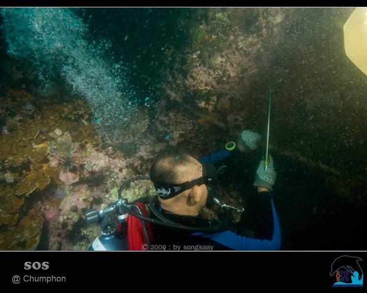 ที่จุดดำน้ำแห่งนี้....เราเก็บเศษอวน เชือก ฯลฯ ได้รวม 273 กิโลกรัม และเคลื่อนย้ายลอบขนาด 2x4 เมตร จากความลึก 10 เมตร ไปยังพื้นทรายที่ความลึก 20 เมตร