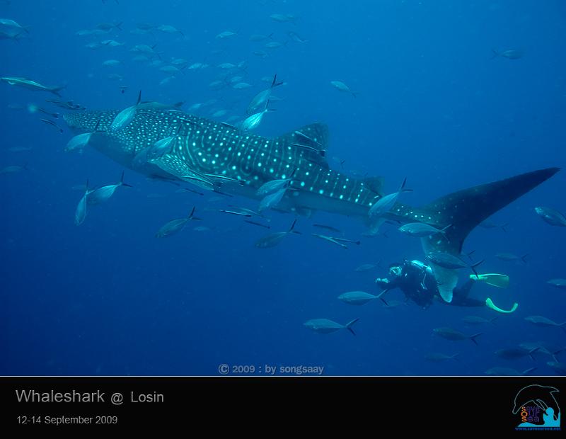 ในไดฟ์สุดท้ายของการดำน้ำทำงานที่โลซิน....ฉลามวาฬตัวโตขนาด 6 เมตร ยังตามมาส่งพวกเรากลับบ้าน ขณะที่เรากำลังพักน้ำกันอยู่.... ฉลามวาฬตัวนี้มีรอยถลอกที่เหนือริมฝีปากบนด้านซ้ายด้วย....