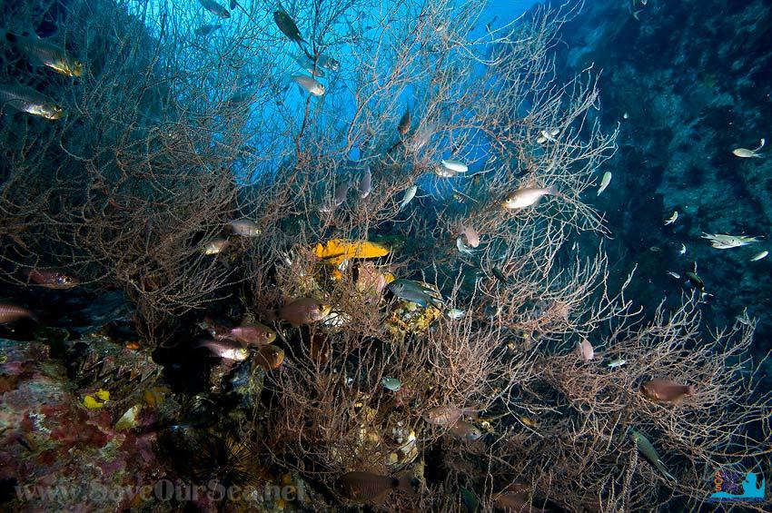 ปะการังดำ ที่เคยมีอยู่มากมาย ก็ร่อยหรอหายไปพอสมควร แต่ก็ยังพอมีประดับกองหินให้มีความสวยงามอยู่บ้าง