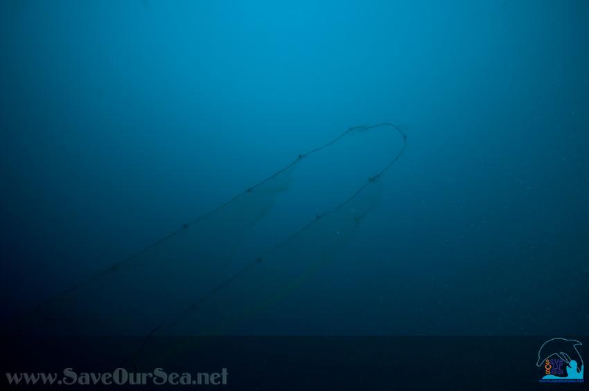 ดำลงไปทางด้านทิศเหนือ พบอวนพาดอยู่เป็นช่วงๆ ไล่ไปตั้งแต่ระดับ 55 ไปจนถึง 90 ฟุตเลย