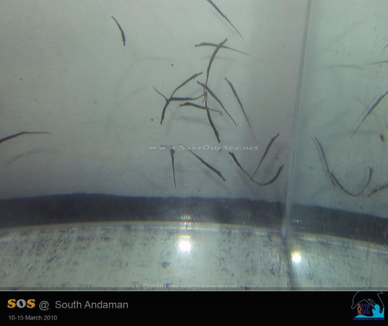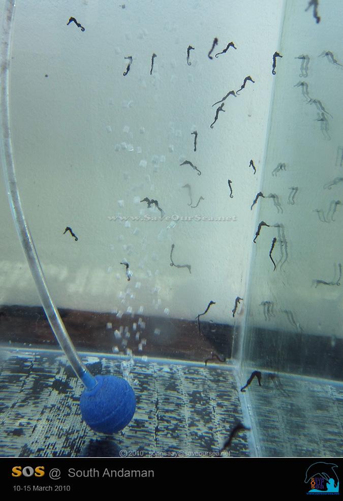 ทั้ง Pipefish และม้าน้ำที่ยังตัวเล็กหน่อย ก็จะถูกแยกเลี้ยงไว้ในตู้กระจก ...