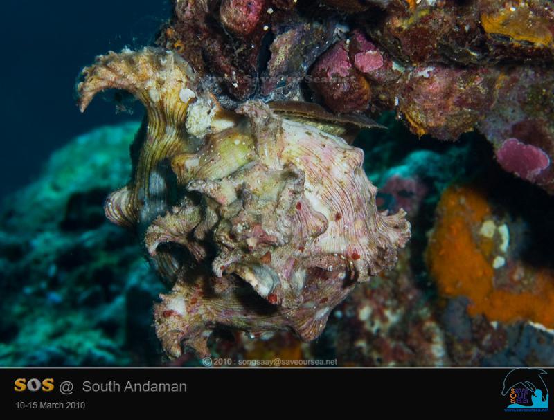 หอยสังข์หนาม ... ที่ห้อยหัวลงอยู่ใต้หิน นานๆจะได้เห็นตัวเป็นๆสักที