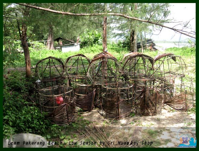 ไปพบพี่คนนึงเค้ากรอกทรายใส่ขวดพลาสติก ตามประสาคนอยากรู้อยากเห็นก็เลยถามเค้าว่า เอาไปทำอะไร เค้าก็บอกว่ากรอกทรายเอาไว้ถ่วงซํงหรือลอบ ที่วางข้างๆ รู้ไหมค่ะ ว่าไอ้ลอบหรือซังที่เห็นเอาไปทำอะไร ? ในช่วงหน้า low season คนขับเรือหางยาว ก็แปลงร่างเป็นชาวประมงท้องถิ่น ทำประมงง่ายๆๆ โดยการเอา ซังหรือลอบที่ว่า ไปทิ้งที่แนวปะการังด้านนอก ห่างออกไปประมาณ 10 M. เอาไว้ดักหมึก เห็นว่าขายได้โลละ 80-120 บาทเลยทีเดียว ทิ้งครั้งนึงข้ามคืน ไปเก็บก็ได้หมึกสักประมาณ 10 กก. มีคนเข้ามารับซื้อถึงที่เลย ถือว่าเป็นการใช้เวลาว่างเป็นประโยชน์ทีเดียว