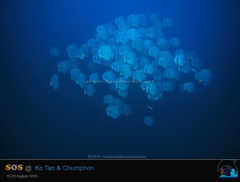 โอ้....ปลาหูช้างหรือปลาค้างคาว (Batfish) ฝูงใหญ่มาก รวมกลุ่มว่ายไปว่ายมาอยู่นั่นเอง....