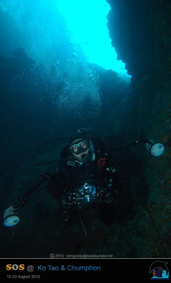 ที่หน้าโพรงถ้ำ....น้องป้อม Nivach กำลังเก็บภาพความงามแถวๆนั้นอยู่ เมื่อเห็นสองสาย รายการทักทายกันใต้น้ำจึงเกิดขึ้น....
