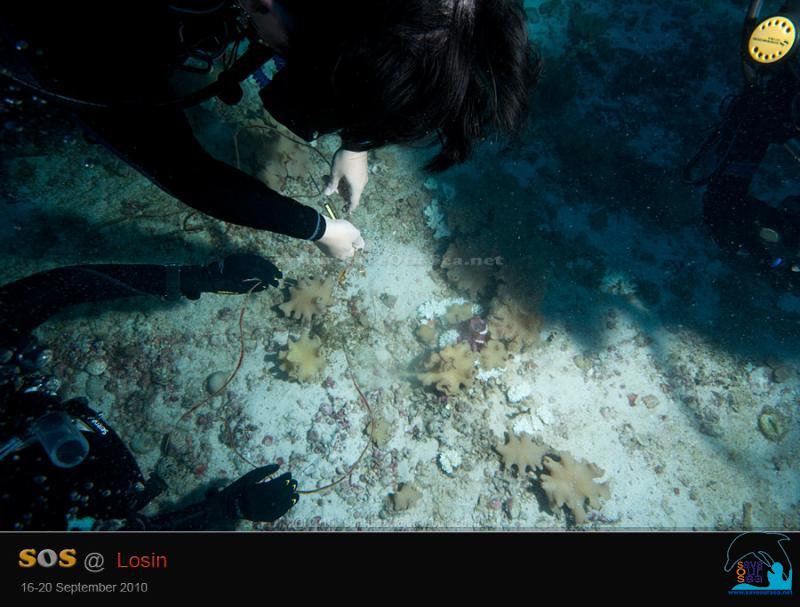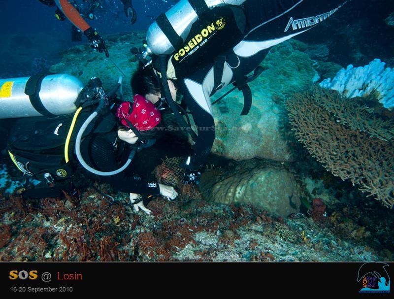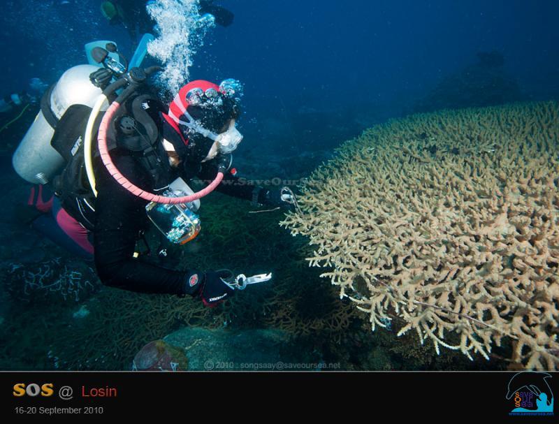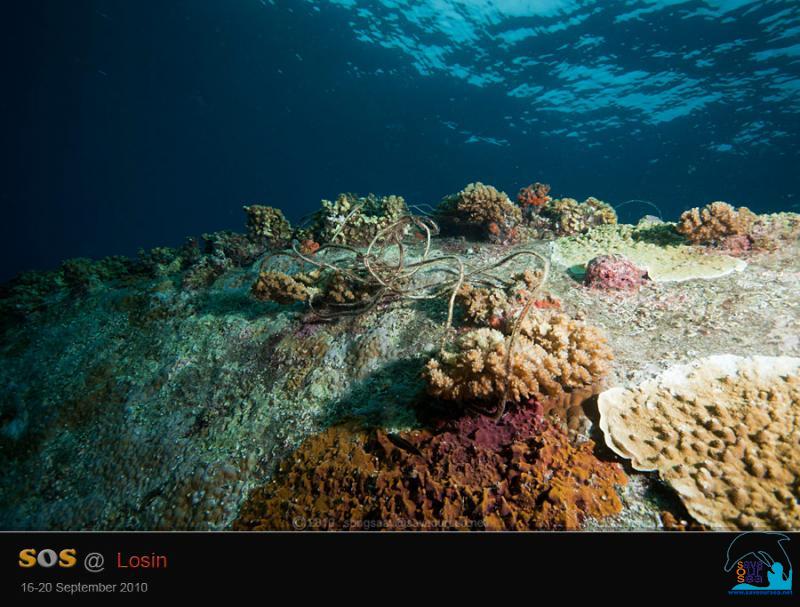 ......... และ เศษอวนเล็กๆ เชือกอวน และเอ็นเบ็ดตกปลา ที่เกี่ยวพันอยู่กับปะการังเท่านั้น
