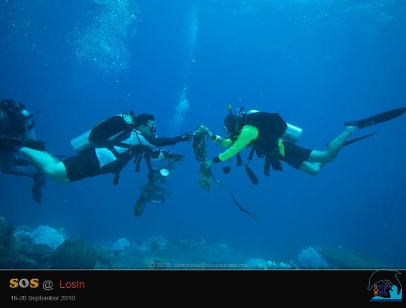 นอกจากอวนผืนใหญ่แล้ว ก็ไม่มีงานหนักอะไรมากมายอีก ที่พบเพิ่มเติม ก็มีพวกเศษเชือก แต่เพื่อไม่ให้เป็นภาระต้องหอบหิ้ว เราก็ยิงส่งขึ้นไปให้นายน้องเก็บหมด