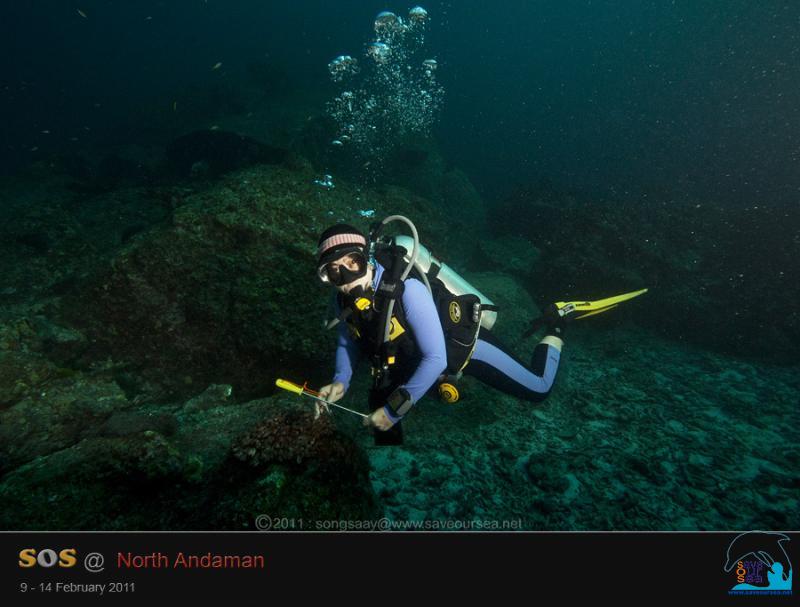 ในระหว่างการไปทำงานตามปกติของเราในครั้งนี้....สมาชิก sos ผู้มีสปิริตในเรื่องรักทะเลและรักษ์ทะเลอย่างล้นเหลือ ได้ร่วมพูดคุยกัน(ต่อจากการได้พูดคุยกันในบ้าน SOS) ว่าด้วยเรื่องสภาพใต้ท้องทะเลที่ทรุดโทรมลงไปจากการทำลายของธรรมชาติและจากน้ำมือมนุษย์ ดังเช่น การเกิดภาวะโลกร้อน ทำให้เกิดปรากฏการณ์ปะการังฟอกขาว ซึ่งทำให้แนวปะการังทรุดโทรมลงไปมาก แต่เราคงไปช่วยอะไรไม่ได้มาก ต้องปล่อยให้ธรรมชาติเยี่ยวยาตัวมันเอง โดยในระหว่างนี้ มนุษย์ต้องไม่ไปซ้ำเติมทำร้ายให้แนวปะการังทรุดโทรมลงไปอีก... โดยทางตรง สามารถทำได้ ด้วยการไม่เข้าไปเหยียบย่ำปะการัง หักหรือเก็บปะการัง เก็บซากหรือสิ่งมีชีวิตใต้ทะเล ไม่ทิ้งสมอเรือในแนวปะการัง ไม่ทิ้งน้ำเสียหรือของเสียลงสู่ทะเล ไม่ไปทำการประมงแบบล้างผลาญในแนวปะการัง เป็นต้น ส่วนทางอ้อม ก็คือการไม่ทำให้โลกร้อนขึ้นไปกว่าเดิม หรือช่วยกันลดภวะโลกร้อนให้มากที่สุดเท่าที่จะทำได้ หนทางรักษาทะเลที่เราจะทำได้เร็วที่สุดในขณะนี้ สมาชิกคิดว่า "ต้องเริ่มด้วยตัวเราเองก่อน" จึงมีการคิดโครงการ "สิ่งเล็กๆที่เรียกว่ารักษ์" ขึ้นมา และได้ไปปรึกษาพูดคุยกันถึงหลักการและแนวทางปฏิบัติ ระหว่างที่เรามีเวลาว่างบนเรือ และจะนำผลที่ได้มาสรุปรวบรวม เสนอเป็นอีกโครงการหนึ่งเพื่อทะเลไทยของพวกเราชาว SOS ต่อไป.... น่าปลื้มใจ และชื่นใจ ที่พวกเรามีความคิดดีๆแบบนี้ จึงขอปรบมือให้น้องๆทุกคน ที่ได้มีส่วนในการทำโครงการนี้ทุกคนค่ะ....