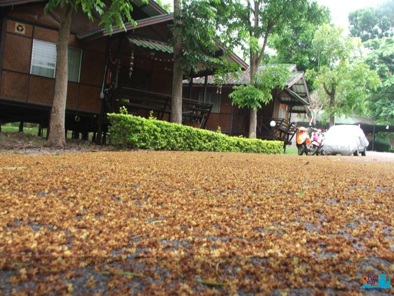 วันนี้ฝักของต้นนุ่นหน้าที่ทำการแตกพอดีครับพื้นที่รอบๆต้นไม้เลยกลายมีสีขาวเป็นหย่อมๆ