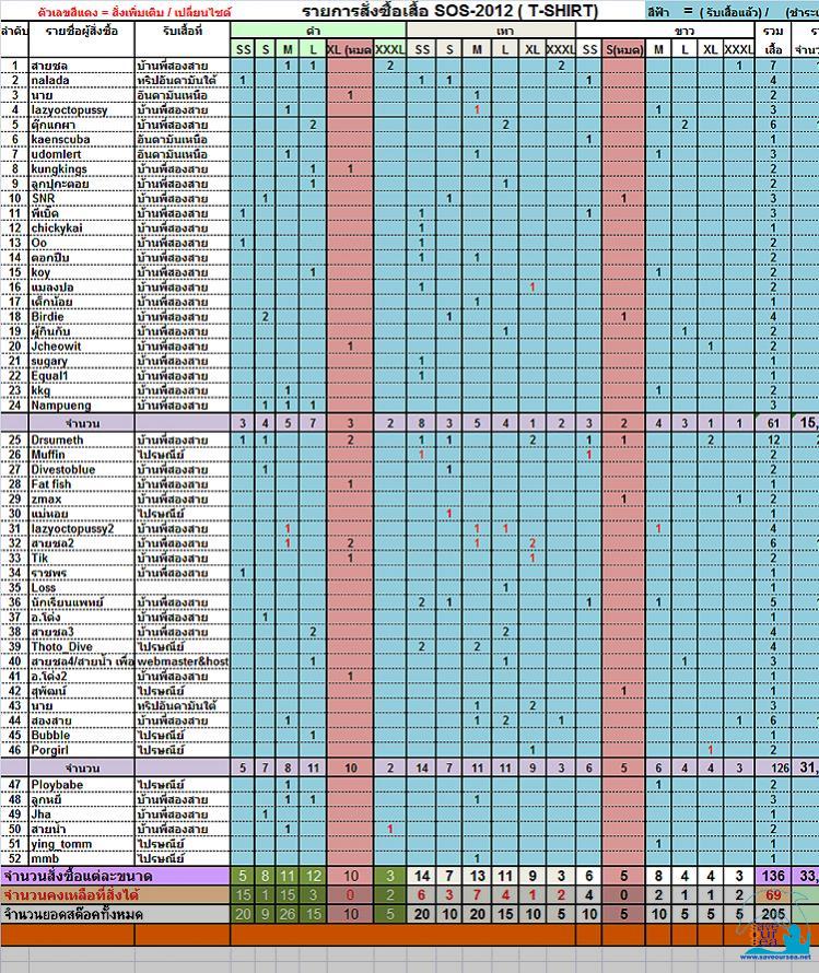 แก้ไขเมื่อ ๒๑พฤษภาคม ๒๕๕๕ ขอบคุณค่ะ พี่สองสาย... ได้แก้ไข คอวี สีดำ XL ไม่ติดลบ-1 แล้วค่ะ และ เปลี่ยนเป็น คอวี สีดำ XXXL 1 ตัว แทน อัพเดทข้อมูลทั้งหมดใหม่อีกครั้ง ดังนี้ แก้ไขครั้งสุดท้ายโดย แมลงปอ : 21-05-2012 เมื่อ 12:16 |
