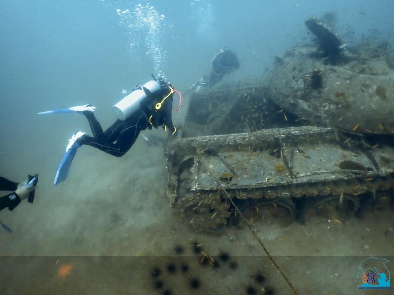 ปะการังเทียมรถถัง หลังจากดำน้ำทำงานที่โลซินเสร็จสิ้นในเย็นวันที่สองของการทำงานแล้ว เรือวีนัสก็แล่นกลับเข้าฝั่งด้านจังหวัดนราธิวาส ใช้เวลาเพียง 6 ชั่วโมงเศษ เรือก็มาจอดทอดสมออยู่หน้าเมืองนราธิวาส 8 โมงเช้าของวันอาทิตย์ที่ 22 มิถุนายน 2565 ซึ่งเป็นวันสุดท้ายของการทำงานของเรา น้องติ๊กและทีมผู้นำดำน้ำของเราก็ดำเนินการบรีฟถึงจุดดำน้ำปะการังรถถัง ที่เราจะลงไปดำน้ำทำงานกัน หลังการบรีฟและเรือหาจุดดำน้ำได้แล้ว เราก็กระโดดลงน้ำกันอย่างกระปรี้กระเปร่า วันนั้น สภาพน้ำทะเลที่หน้าเมืองนราธิวาสใสกว่าปกติ กระแสอ่อนมาก พอเราโดดลงไปใต้น้ำได้ไม่นาน เราก็เห็นรถถังที่จอดนิ่งอยู่บนพื้นทราย แม้จะไม่ได้เห็นทั้ง 25 คัน แค่คันเดียวเราก็ดีใจและไม่ต้องขวนขวายไปการถถังที่ไหนอีก เพราะรถถังที่เราเห็นนั้น ทั้งคันถูกคลุมด้วยอวนเต็มไปหมด ซึ่งสมาชิกเกือบทุกกลุ่มที่ลงไปดำน้ำทำงาน ก็เจอปัญหาแบบเดียวกัน
