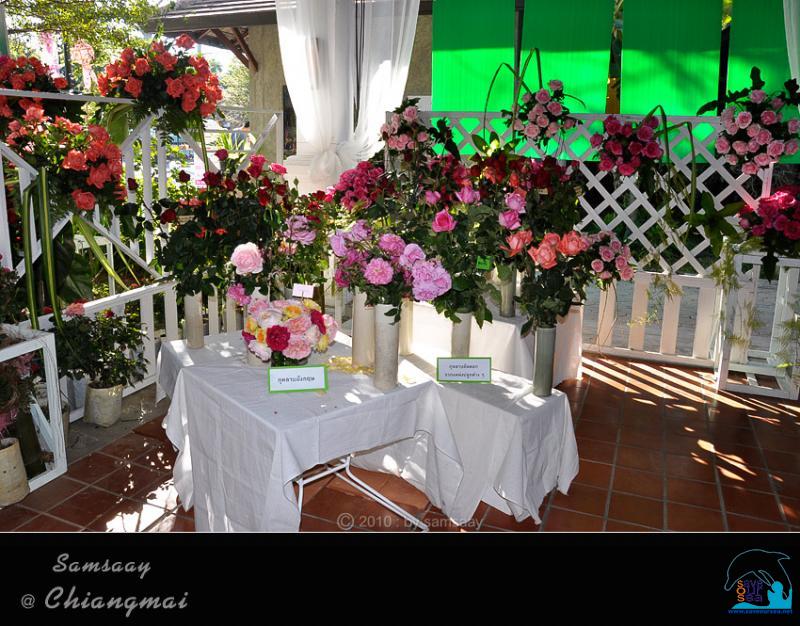 ลานแสดงกุหลาบถัดไป เป็นจุดเด่นของงานอีกจุดหนึ่ง นั่นคือเป็นส่วนแสดงกุหลาบจุฬาลงกรณ์ซึ่งเป็นกุหลาบสีชมพูขนาดใหญ่ที่สวยหวานและหอมมาก เป็นที่โปรดปรานของพระชายาเธอเจ้าดารารัศมี อันเป็นที่เคารพรักของชาวเชียงใหม่ ในส่วนนี้มีพระรูปและพระประวัติของพระชายาเธอเจ้าดารารัศมี ตั้งแสดงไว้ด้วย...