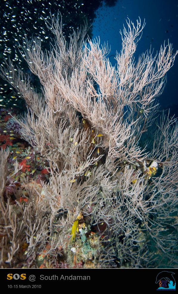 เกาะห้าใหญ่ เป็นจุดที่มีอะไรที่เป็นพุ่มๆอย่าง กัลปังหา ปะการังดำ ปะการังอ่อน ฯลฯ ที่มีกิ่งก้านพอเหมาะให้ม้าน้ำเกาะพักได้หลังถูกปล่อยออกจากแก้วแล้ว