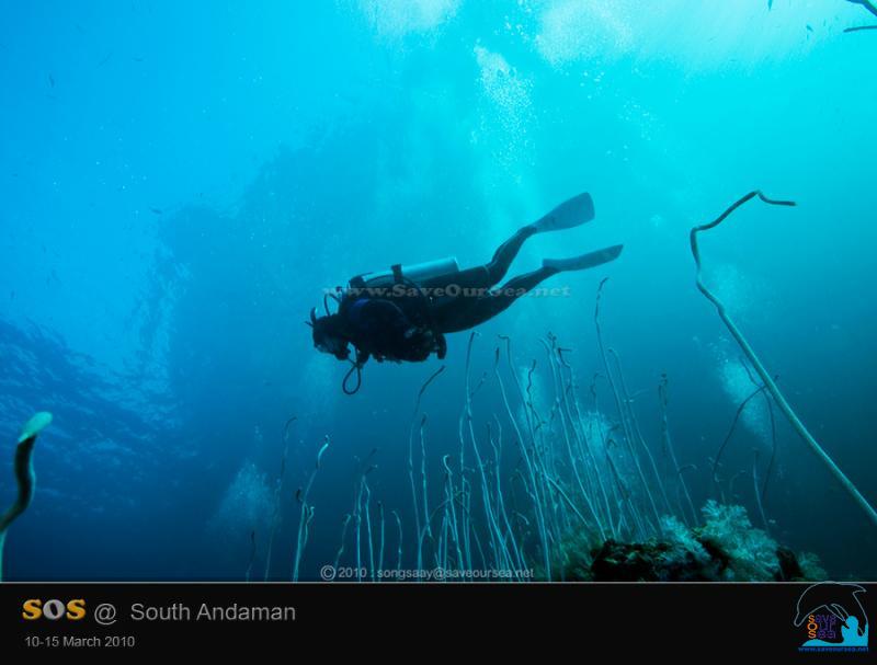 พอคลื่นลมเริ่มเบา เราจึงออกเรือไปหินม่วง เพื่อปล่อยปลา ... คลื่นลมไม่แรงจัด แต่น้ำแรงเอาเรื่อง ผมเป็นคนหิ้วกระเป๋าใส่กะละมังใส่ปลาลงไปเอง แ่ต่ .... ไปไม่ถึงหินม่วงหรอกครับ กะละมังมันต้านน้ำ จะตีฟินอย่างไรก็เข้าไม่ถึงหินเสียที พอขาเริ่มหมดแรงจึงปล่อยตัวตามกระแสน้ำไป หลุดออกไปทางตะวันตก ต้องลอยคอหิ้วกระเป๋าบรรจุปลาอยู่บนผิวน้ำราว 15 นาทีคนบนเรือจึงเห็นและมารับ ..... เป็นอันว่า ไดฟ์นี้ ก็ยังไม่ได้ปล่อยปลา เพราะทั้งคนทั้งปลาลงไปไม่ถึงหินม่วงเหมือนคนอื่นๆเขา