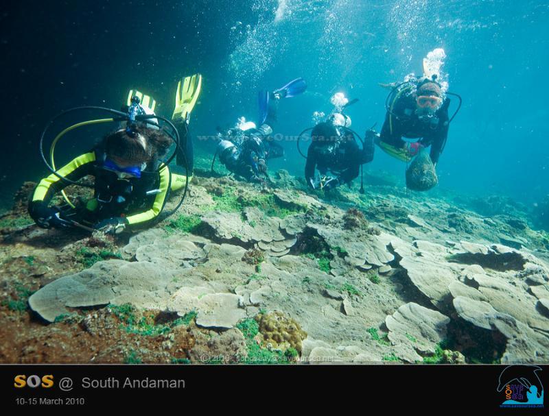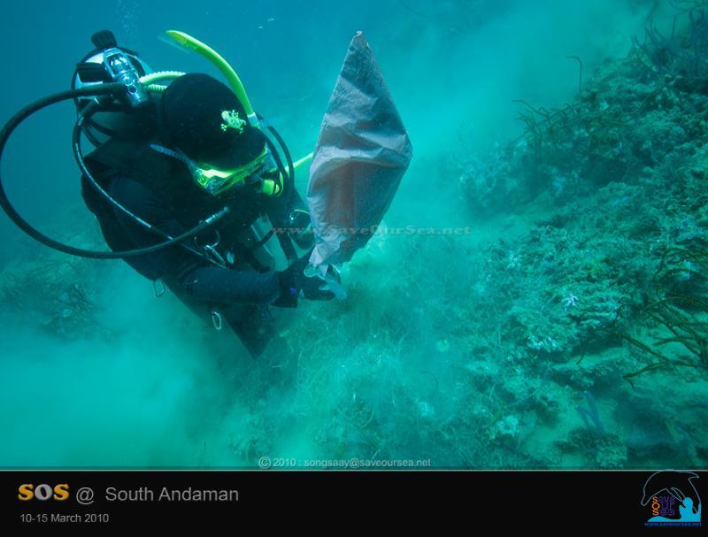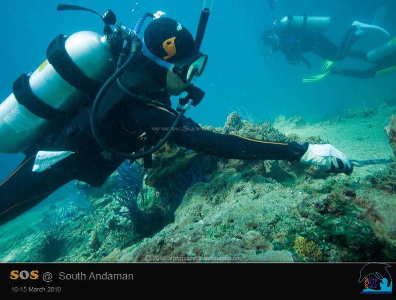 เมื่อชิ้นใหญ่ๆหมดไป พวกเราก็ลงมือเก็บเศษเล็กเศษน้อยที่ยังติดอยู่กับปะการัง